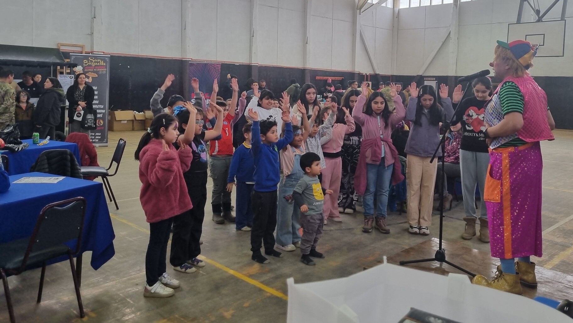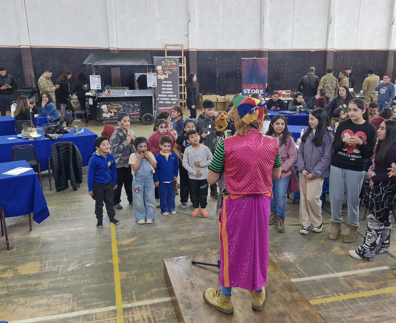 Gracias a la gestión de la Caja de Compensación Los Andes, se realizó también una tarde recreativa dirigida especialmente a los niños y niñas de la isla, quienes disfrutaron de concursos como el “Sombrero Loco” —confeccionado con materiales reciclados— y “Dibuja a tu mascota”, además de un show familiar con el Payaso Polvorita y la cantante regional Gisela Maciel.